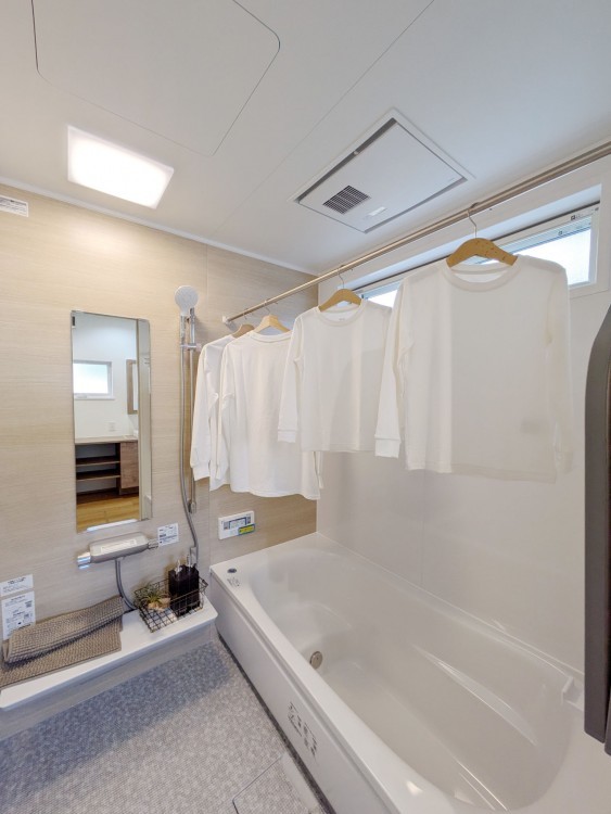 - 側溝、システムキッチン、食器洗浄乾燥機、IHクッキングヒーター、オール電化、シャンプードレッサー、洗浄便座、浴室乾燥機、追い焚き、複層ガラス、ウォークインクローゼット、モニタ付インターホン、駐車場2台分、エコキュート
