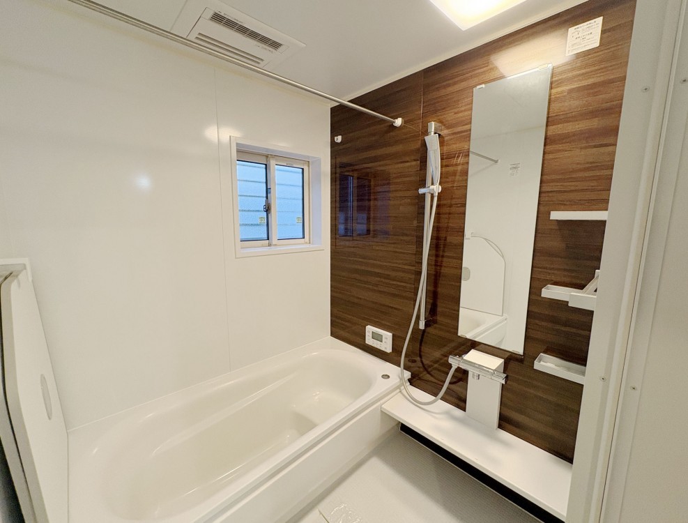 - 側溝、システムキッチン、食器洗浄乾燥機、IHクッキングヒーター、オール電化、シャンプードレッサー、洗浄便座、浴室乾燥機、追い焚き、複層ガラス、ルーフバルコニー、ウォークインクローゼット、モニタ付インターホン、駐車場2台分、床下収納、トイレ2箇所