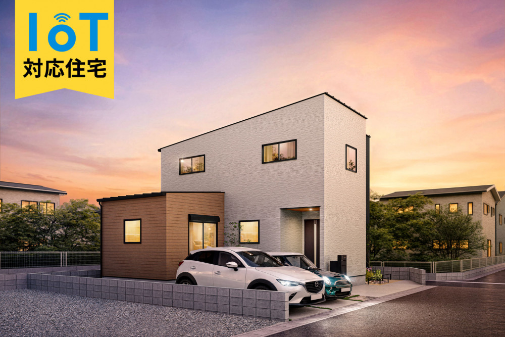 土地、建物、外構、太陽光発電システム、IoT機器(ホームデバイス)、電動シャッター(1ヵ所)、エアコン(2台)、LED照明、オール電化、エコキュート、IHヒーター、食器洗乾燥機、浄水器、窓サッシ(LIXIL サーモスL)、外部水栓、宅配BOX、EVコンセント、屋外カメラ等