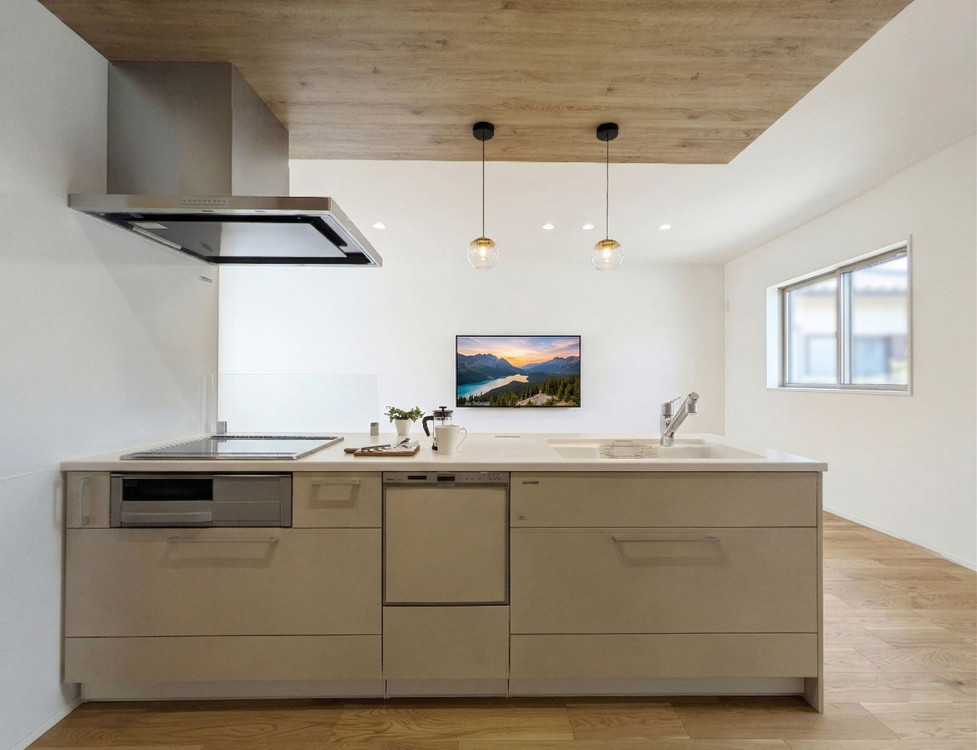 - 側溝、システムキッチン、カウンターキッチン、食器洗浄乾燥機、IHクッキングヒーター、オール電化、シャンプードレッサー、洗浄便座、浴室乾燥機、追い焚き、複層ガラス、ウォークインクローゼット、モニタ付インターホン、駐車場2台分、駐車場3台分、エコキュート、トイレ2箇所