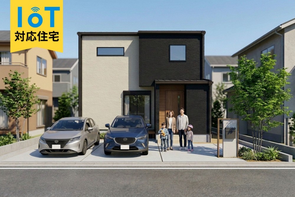 土地、建物、外構、太陽光発電システム、IoT機器(ホームデバイス)、電動シャッター(1ヵ所)、エアコン(2台)、LED照明、オール電化、エコキュート、IHヒーター、食器洗乾燥機、浄水器、窓サッシ(LIXIL サーモスL)、外部水栓、宅配BOX、EVコンセント、屋外カメラ等